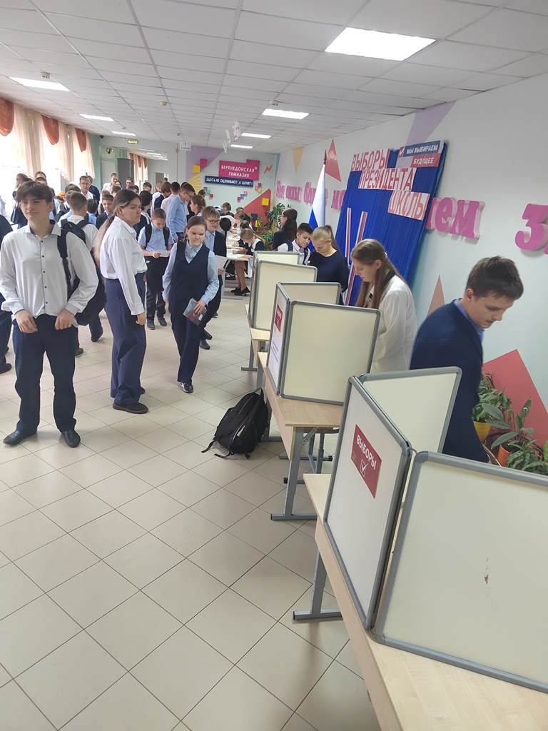В фойе гимназии, где был развернут избирательный участок, царила радостная и оживленная суматоха! Обсуждения, улыбки о всеобщее воодушевление – такой важный день объединил всех: и учеников и учителей.