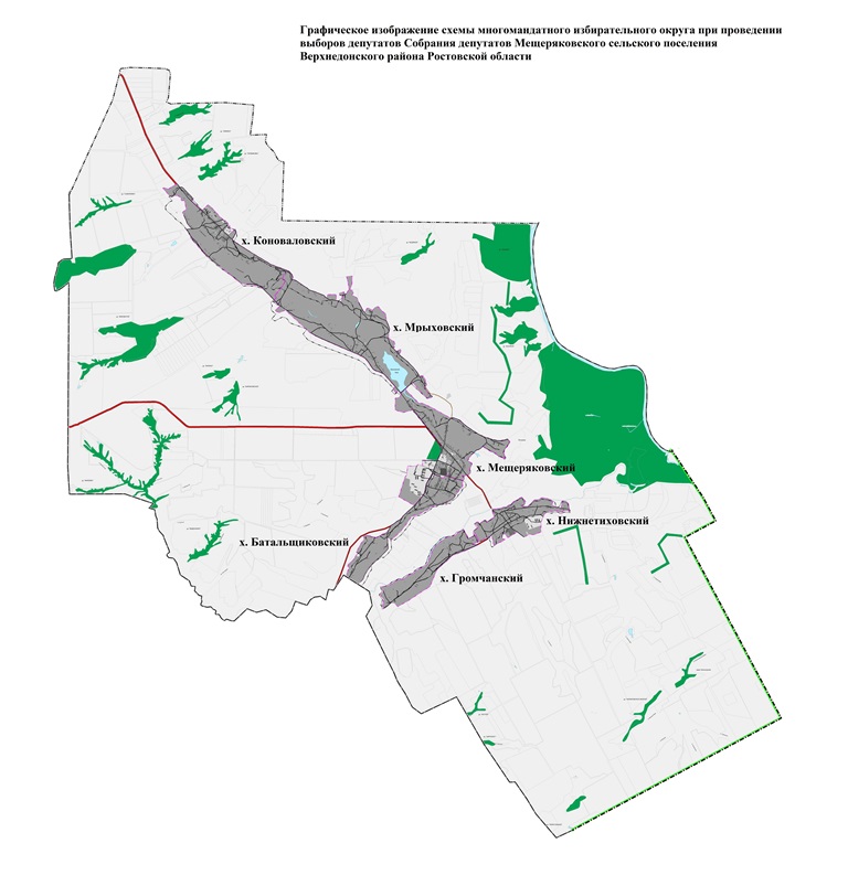 Схема многомандатного избирательного округа при проведении выборов депутатов Собрания депутатов Мещеряковского сельского поселения: