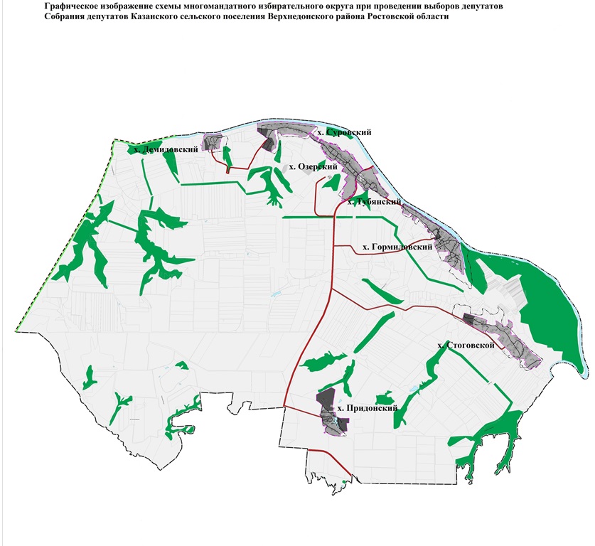 В границах х. Демидовского, х. Суровского, х. Озерского, х. Тубянского, х.Гормиловского, х. Стоговского, х. Придонского.